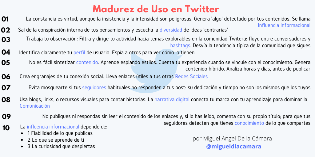 1 La constancia es una virtud, pero la insistencia se puede poner en contra, porque ser una ‘máquina’ twitera no se logra mediante una actividad intensiva, sino mediante la generación de ‘cosas’ que son detectadas por sus contenidos. Esas ‘cosas’ se llaman Influencia Informativa.